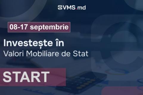 Ministerul Finanțelor anunță deschiderea unei noi perioade de subscriere pentru valorile mobiliare de stat (VMS), disponibilă prin intermediul platformei online https://evms.md/, în intervalul 08 – 17 septembrie 2025. Aceasta este a treia din cele trei sesiuni planificate pentru trimestrul III al anului curent.