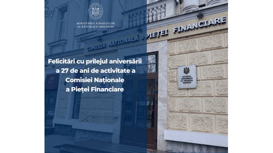Cu ocazia marcării a 27 de ani de activitate a Comisiei Naționale a Pieței Financiare, echipa Ministerului Finanțelor vă transmite cele mai sincere felicitări.