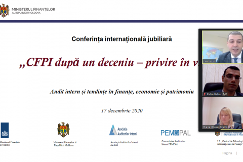 La data de 17 decembrie 2020, a avut loc Conferința internațională jubiliară „CFPI după un deceniu – privire în viitor”, destinată auditorilor interni din sectorul public din Republica Moldova, cu prilejul împlinirii a 10 ani de la adoptarea Legii nr.229/2010 privind controlul financiar public intern, document care a deschis porțile pentru dezvoltarea funcției de audit intern și a sistemului de control intern managerial. Conferința a fost organizată de comun cu experții internaționali din Olanda, Croația, România și Armenia, reprezentanții Instituției Publice „Centrul de Tehnologii...
